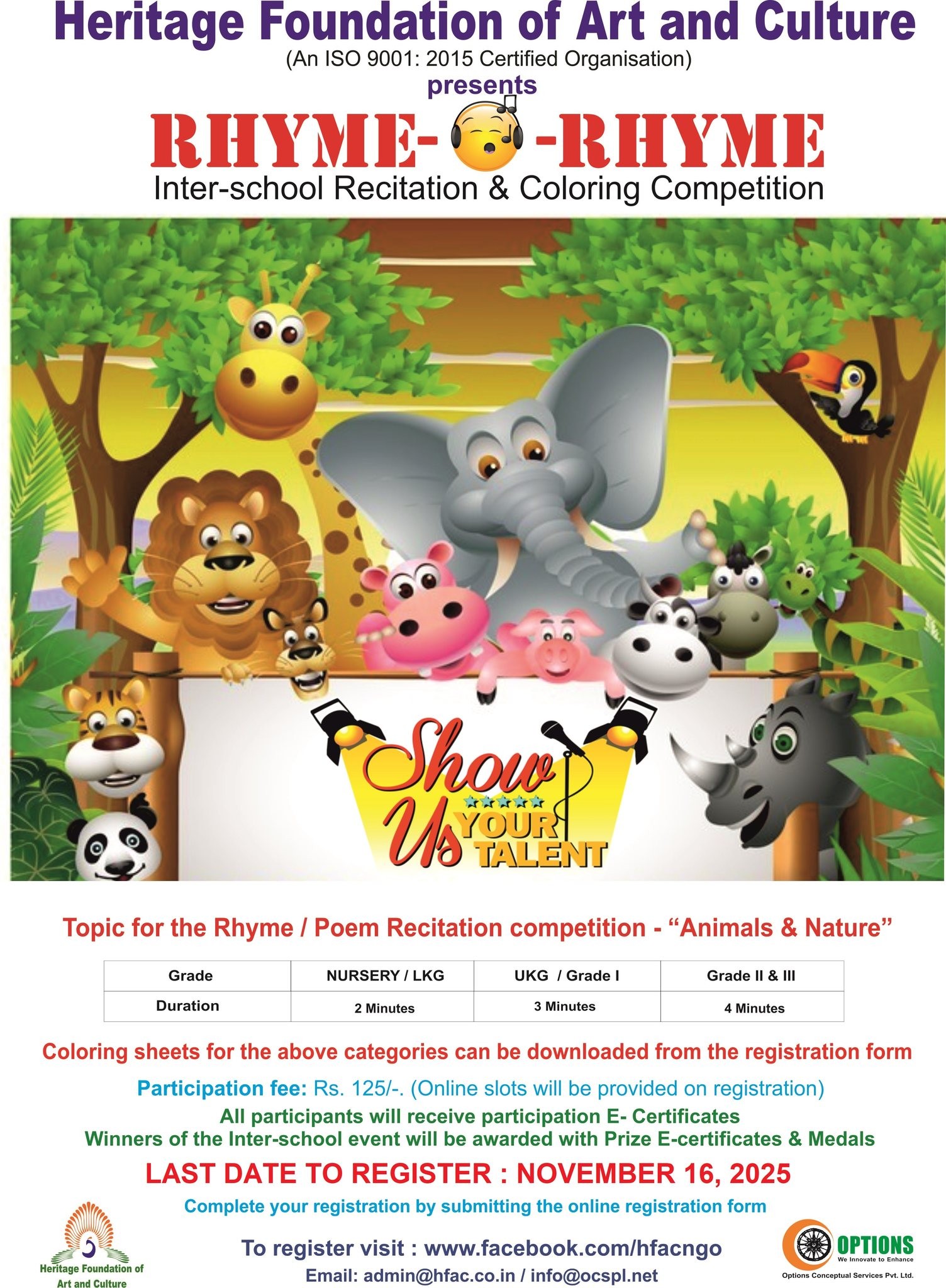 Inviting students to participate in the 7th edition of 'Rhyme O Rhyme', an Online Inter-school Rhyme / Poem recitation and Coloring Competition for Kindergarten & Primary children.